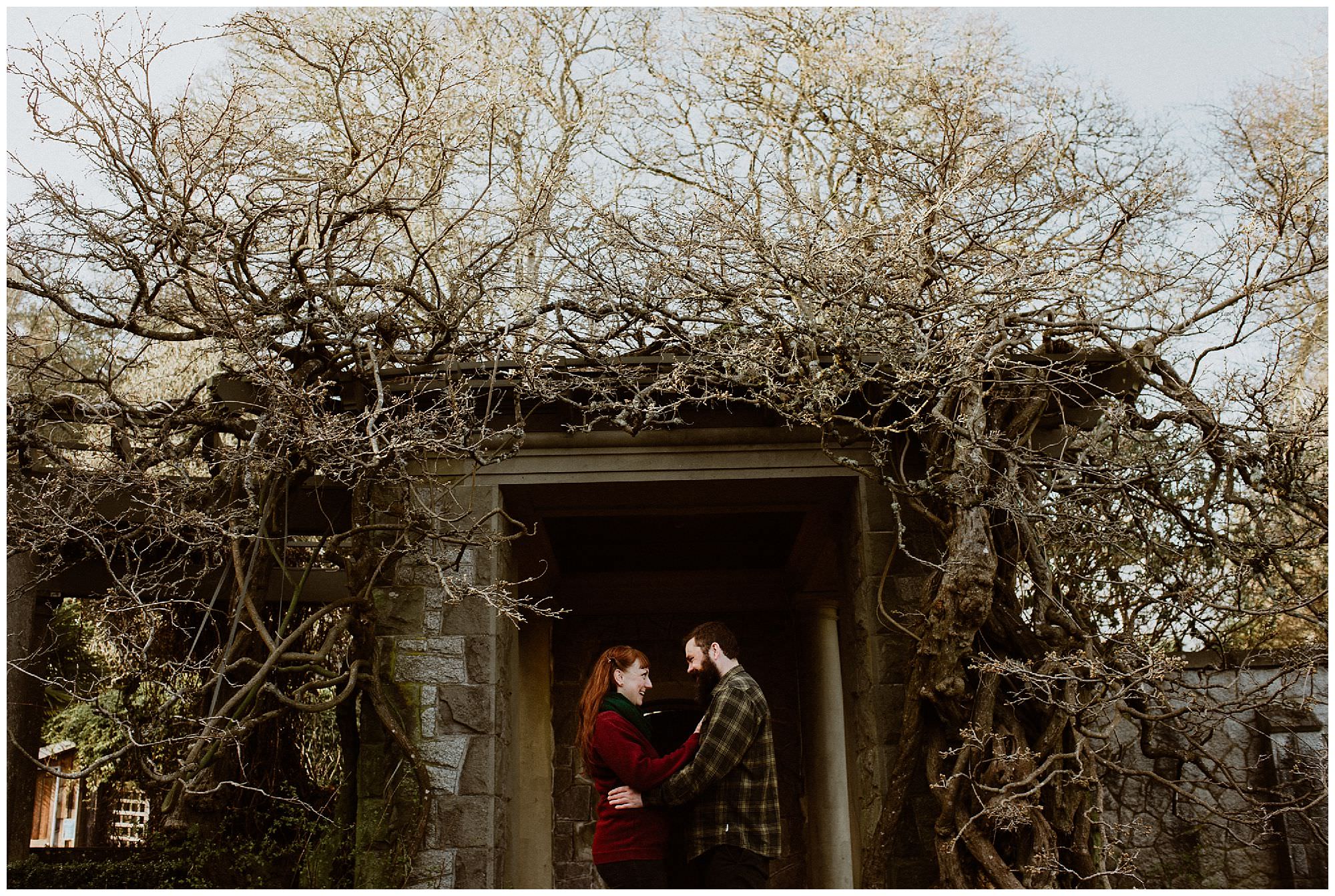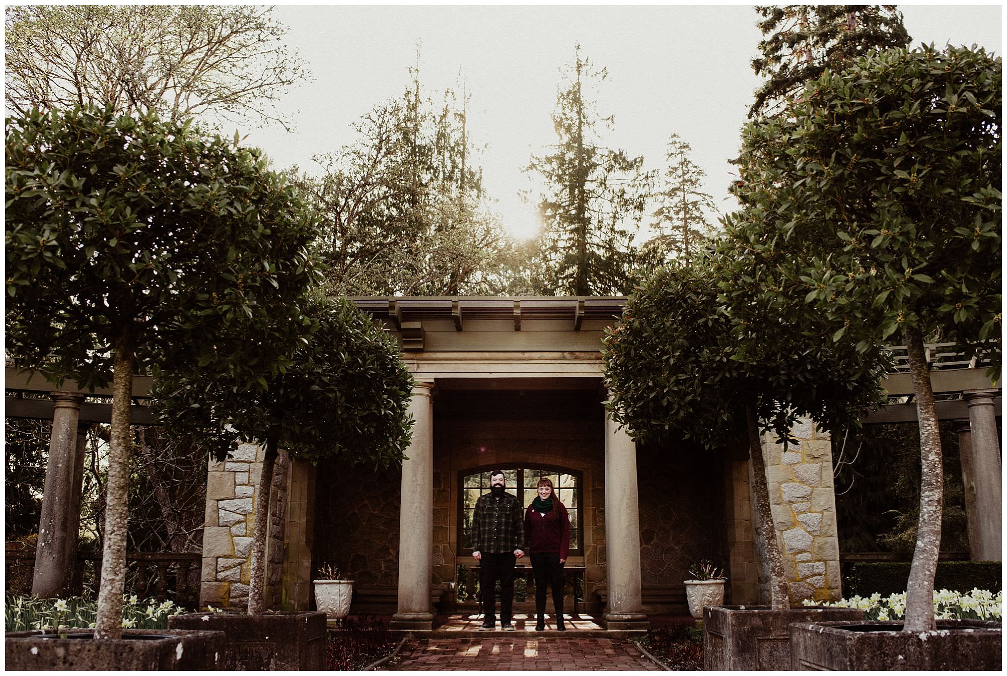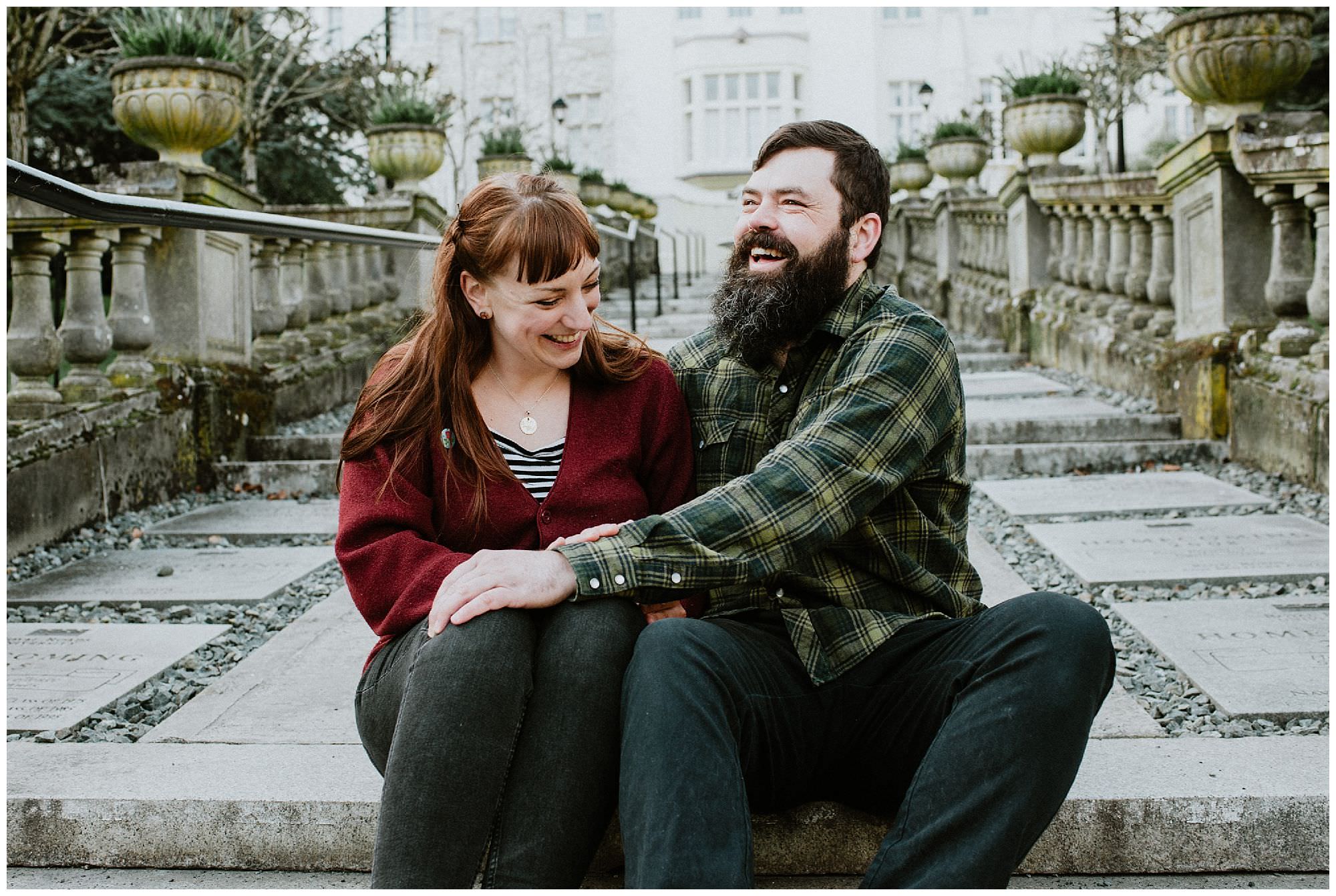 Andy and Mae live on Vancouver Island near Sooke, BC. If you’ve been up that way you know that there are some awesome breweries, gorgeous seaside landscapes and when the weather is just right you can get some of the prettiest sunsets in BC. When we started talking about where they might want to start with photos Mae instantly knew that she wanted to start our engagement session at Royal Roads University where Andy first asked Mae to go steady (yes, he used those exact words, and yes my heart melted).