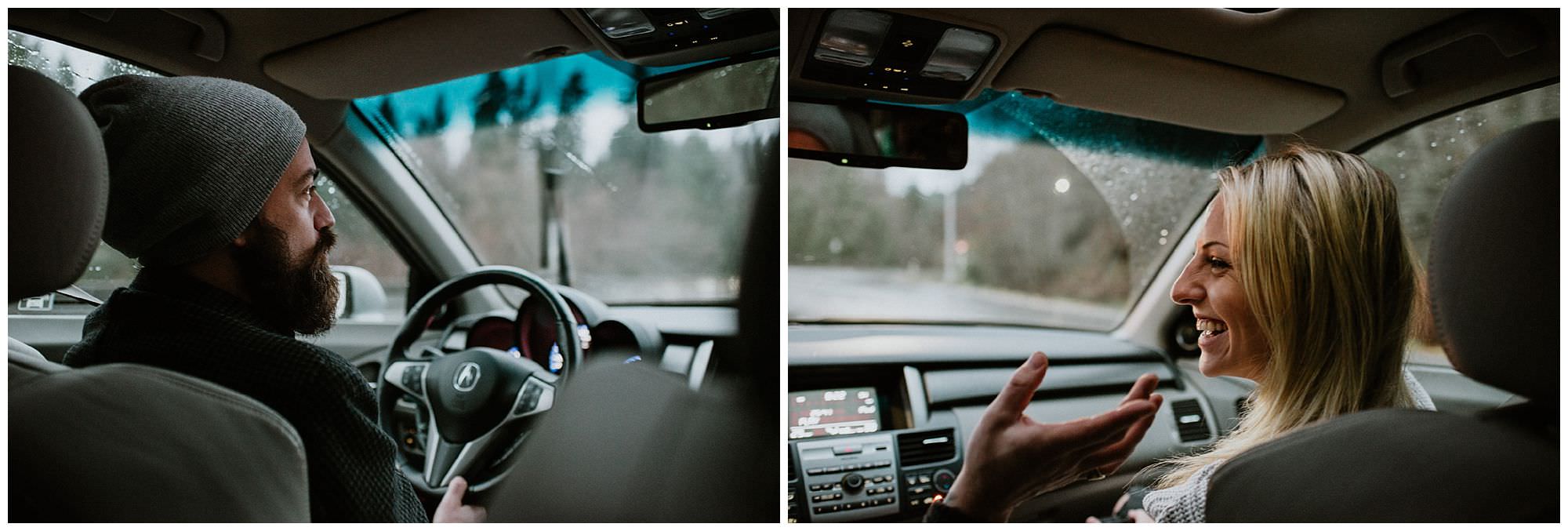 As I sat in my living room at 6am waiting for Kirsten and Johnny to pick me up for their rainy engagement session on Thormanby Island, a dread-like feeling washed over me. It was pouring, and cold, and the wind had ripped big branches off of the trees overnight which meant that debris was scattered everywhere. I didn’t even know if it would be possible to find any kind of cover from this kind of weather, but when Kirsten and Johnny picked me up at 6:15 with smiles on their faces, I knew we’d be going for it.