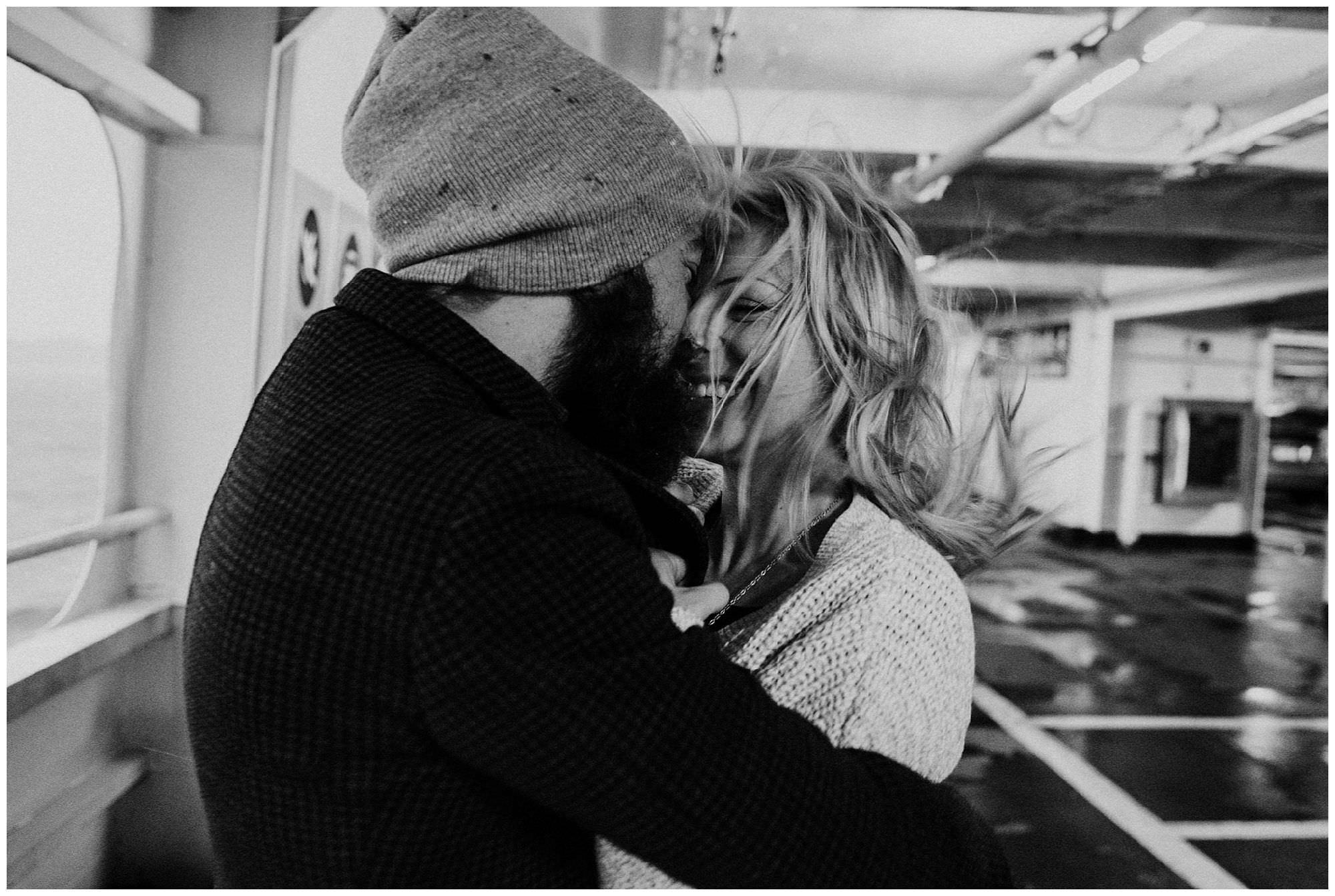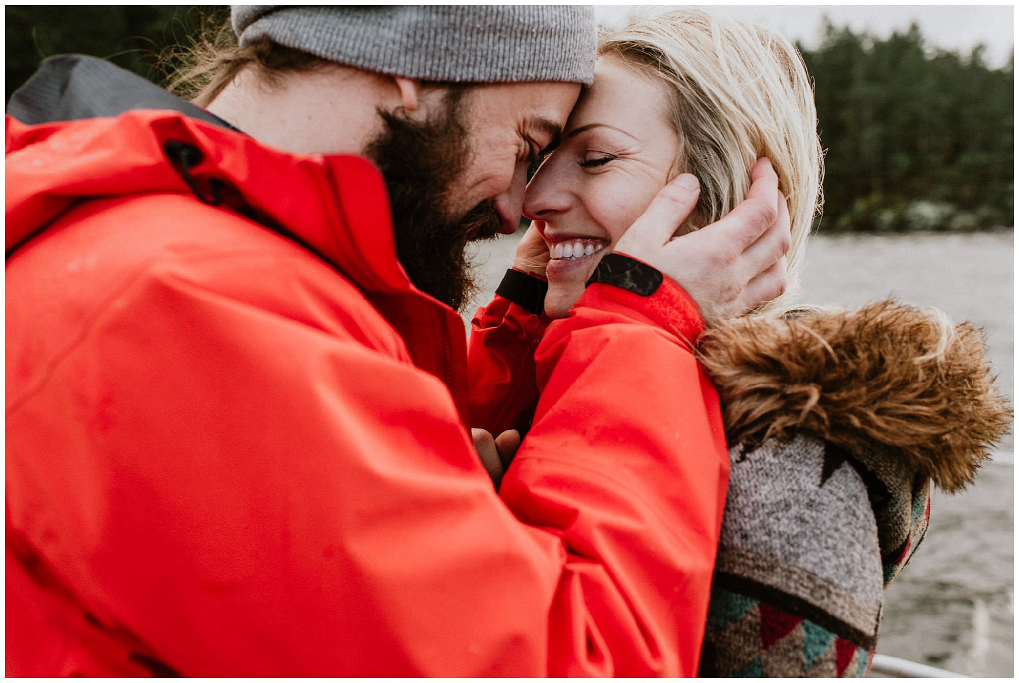 Once we docked I had to start shooting immediately. We had sun. Beaming, gorgeous, early morning sun. We spent the morning exploring their land, drinking coffee and Bailey’s and capturing some of the cutest cabin engagement photos ever. We lit a fire too, but, let me tell you, these two didn’t need any extra heat. Their love for each other was absolutely palpable and infectious and even after a long day of boats ride, wind storms, getting drenched then drying off only to get drenched again I felt refreshed and excited for more adventures, and hopefully more engagement sessions on private islands!